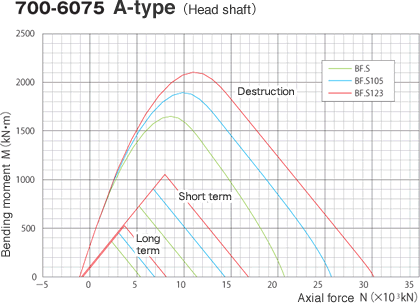 The flexural strength of BF.S pile will be as shown on the right figure. (For representation, values for 700 - 6075 are shown.)